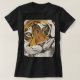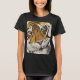 Ansikte om en tiger som verkar vända huvudet för att se vem som kommer. Vänligt, ja, tillit ja, varm ja. Den här tigern ansikte är säker på att du kan komplimentera din vardrobe och skapa förtroende för din strid. Njut
