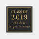Den här enkla skriptdesignen i guld innehåller texten "CLASS OF 2019" och sedan "the best is to kom". Perfekt för en skolåterförening eller en skolåterförening.