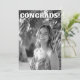 En inbjudan till examenfest för gymnasie- eller högskolestudenter där du kan lägga till examenstudentens foto. På baksidan lägger du till all information om festen. Söta svart-vita grafikbilder av examenshattar, diplom och böcker.
