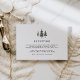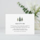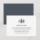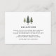 Jägaregrönt och vitt mottagningskort matchar vår rustika och chic Tall Pines bröllops- och evenemangsinbjudan och har silhuetter av tallar i mörka gröna nyanser. Personifiera med din bröllopsmottagnings detaljer inklusive tid, plats och eventuell ytterligare information.