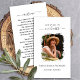 En högtidlig minnesbönkort med utrymme för ett foto, meningsfull text, namn och datum, samt frasen "För evigt i våra hjärtan". Idealisk för begravningar och minnesceremonier.
