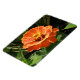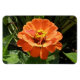 Denna enorma magnet presenterar specificerad fotograferar av en nätt orange Zinniablomma. Fotografera togs genom att använda makrofotografi och visar att den delikat skönheten av de orange petalsna och gult centrerar av denna härliga blomma.