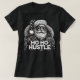 Monokrom illustration av Jultomten som en rebellig rockstjärna med studerade läder i jacka och solglasögon, med den feta frasen "HO HO HUSTLE" på framträdande plats i högkontrastbokstäver.