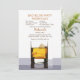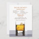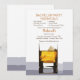 En mans inbjudan att fira en födelsedag, klara bar exam, möhippa och mer. Kortet har ett glas med is och sprit.