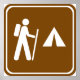 Vägskyltar och vägskyltar i internationell, som ger råd om fritidsanläggningar, närmare bestämt vandring med camping.