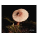 Ett slagrat svamprum står ensam i en solljus av den tysta skogen.