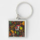 Höjd, löv, nöt och bär på mörk fyrkantig silverfärgad nyckelring