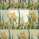 Gult Irises and Grashopper - Den här bilden är baserad på ett Katsushika Hokusai-vintagens antika utskrift från 1820-talet. Målningen visar en gräshoppor i en gult iris-blommor. Grafikkonst, asian japanese design.