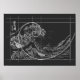 Hokusai Meets Fibonacci linjär svart och vit Poster