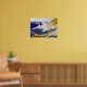 Hokusai Ocean Vågar poster. Ukiyo-e från japansk Edo Period. Katsushika Hokusai målade upp några av de mest kända vågmålningarna i den japanska konstens historia. Ocean Vinkarare skildrar en båt av japanska sjömän som kämpar mot en monstruös blå våg. Precis som hans andra marinmålningar skildrar Ocean Vågar på ett utmärkt sätt havets tumult och raseri. En underbar gåva till fläkt av Hokusai, japanska havsmålningar och asiatisk konst.