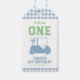 First birthday golf theme "Hole in One " with gold cart and light blue checkered plaid pattern.
