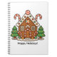Cute, fun festive holiday gingerbread house spiral notebook, with a colorful gingerbread house, designed with candy canes and Christmas trees and happy holidays greeting. Great for using, or gifting to friends or family for the holidays.