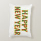 Fun festive holiday accent pillow. Merry Christmas on one side and Happy New Year on the other. Red and green letters outlined in gold. Decorate your family room or bedroom with a cozy comfy greeting on a sofa, bed or chair with this seasonal pillow.