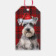 A red and gray holiday plaid gift tag coordinates with our gift wrap and ribbon for a complete look to the Schnauzer dog lover's holiday gift giving.