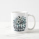 Holiday coffee mug is shown with a cute wintery blue plaid pumpkin floral print.
