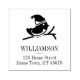 En personlig gummistämpeldesign med en rödhake ovanför ditt namn och returadress text nedan. Perfekt för att lägga till en extra speciell touch