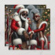 A sleek, high-fashion portrayal of a modern Black Santa and Mrs. Claus radiating power, love, and luxury. Dressed in red leather and fur-trimmed glam, they sit before a glittering Christmas tree surrounded by gold ornaments and wrapped gifts. Every detail—from their designer shades and golden jewelry to the confident smirk they share—redefines holiday spirit with unapologetic style and opulence. Perfect for digital art collectors, seasonal campaigns, or luxury holiday merchandise celebrating contemporary Black excellence.