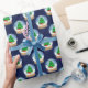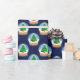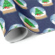 A classic holiday pattern featuring snow globes with a wintery Christmas tree scene inside on a dark blue background. Perfect to add a cute festive touch to your gifts this Christmas!
