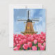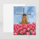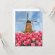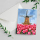 Holländsk väderkvarn Tulpan Blomsterfält Vattenfärg Målning Kort