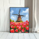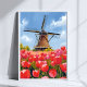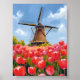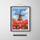 Holländsk väderkvarn Tulpan Fält Landskap Akvarell Poster