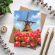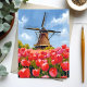 Holländsk väderkvarn Tulpanfält Landskap Vattenfärg Målning Kort