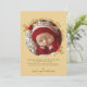 Vintage inspirerad baby's första julkort skapat med handmålad akvarell julgran och bär. Personalisera texten och fotot för en unik julhälsning.
