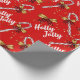 Holly Jolly Finare Script, jul Candy cane, Guld Bows, Illustration Mönster Red Wrapping Papper.