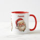 Ett mugg med en glatt illustration av en vintage stil Jultomten med röda rosyskon och med sin klassiska rödtomhatt och sin stora vita björn. En snårskog bidrar till den festliga helgdag i denna utformning.