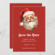 Spara datumkortet med en glatt illustration av en vintage stil Jultomten med röda rosyskon och med hans klassiska röda tomhatt och stora vita björn. En snårskog bidrar till den festliga helgdag i denna utformning.