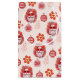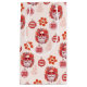 A colorful hippie Santa on a pale pink background smiles amongst colorful ornaments with retro holiday sayings