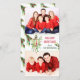 Dina egna fotografier tar toppen och grund på det här festliga Helgdag. Mellan fotografierna finns en söt vattenfärgsbild av en ihåligt dekorerad julfläkt. Din anpassningsbar står i röd och grönt på ena sidan. Kortets baksida har en matchande, grovt upprepande mönster. *Design kredit till EphrazyDesign.