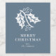 Lägg till den här festliga etiketten till din gåva från vin i julas. En bild av löv och bär på hully visas i vitt på en vacker pastellblå bakgrund. Ett enkelt meddelande "God jul" visas nedanför grafikobjektet tillsammans med anpassningsbar för ditt namn.