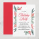 Inbjudan gäster till er julfest i stil med våra vackra inbjudningar från Holly och Evergreen. "Julfest" visas i ett elegant-rött calligraphy-skript med information om party som visas nedan. Din julfest är inramad av röda vattenfärgsmusslbär med grönt gräs och löv. Den botaniska julfesten inbjudan går tillbaka till en fast röd bakgrund.