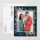 vykort för elegant helgdag med ditt favoritfoto på framsidan med rött vattenfärgsbär med grönt gräs boughs och foliage mot en marin bakgrund. "Glad helg" visas överst i ett elegant som innehåller ett vitt calligrafiskt skript. Anpassa framsidan av det botaniska vykortet genom att lägga till ditt namn och året. Det vackra vykortet återgår till att visa din returadress och anpassningsbar. Designad att samordna med vår samling Holly och Evergreen helgdag.
