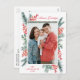 Skicka varmt helgdag med vår elegant Season Hälsning-vykort med ditt favoritfoto inramat av rött vattenfärgsblåbär, evergreen gräs boughs och spola blad mot en skarp vit bakgrund. Den festliga utformningen markeras med "Season’s Hälsning" i ett klassiskt rött kalligrafiskt skript. Anpassa fronten med din familj namn och året. Postkortet återgår till visning av returadress- och anpassningsbar-meddelandet. En del av vår samling Holly och Evergreen helgdag.