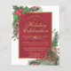 Dessa budget jul eller högtidsfestinbjudningar är ett ekonomiskt sätt att inbjuda dina vänner och familj att fira säsongen tillsammans. De har en vacker och festlig design med en falsk guldram omgiven av handmålade akvarelljärnekblad, bär och tallgrenar. Den gyllene texten sticker ut underbart mot en marmorerad djupröd bakgrund. Budgetvänlig, prisvärd och vacker.