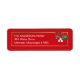 Returadressetikett Red och guld med en slitande muskulatur i hörnet.