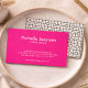 Vintage-glasögonblock mönster i brunt och vitt täcker affärskortets baksida. Uppdatera framsidan av shock rosa med ditt namn och din affärsinformation. © 1201AM DESIGNS