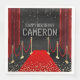 De här party-servetterna i anpassningsbar har ett elegant och glamoröst VIP Hollywood-tema. En bild av den ökända röda mattan placeras tvärs över mitten. Ett exempel och namn skrivs ut mellan lyxröda teatergardiner. Du kan anpassa blöjorna så att de innehåller ditt eget namn och egen text. Vänd ljus hand över överdelen och guld glitter konetti gräns över grund.