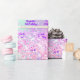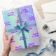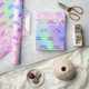 Elegant, giftig, glamorös stil party-gåva som är papper för en 18:e (eller någon ålder) födelsedag. En holografisk trendig med enmajs och regnbåge färg i rosa, lila, ro guld, mynta grönt. Dekorerad med rosa Faux glitter. Anpassa och lägg till namn och text. Lila färgad brev.