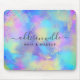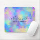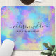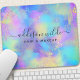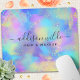 Släpp loss din inre konstnär med denna snygga och stilrena musmatta! En livfull blandning av pastellblå, rosa, lila och gula nyanser skapar en drömlik, akvarell-lik bakgrund. Glittrande glitteraccent ger en touch av glamour, perfekt för den kreativa proffsen. Personalisera den med ditt namn och titel i ett modernt sans-serif-teckensnitt för en verkligt unik arbetsplatsaccessoar. Denna design är både funktionell och vacker, vilket gör den till ett bra val för alla hår- och sminkkonstnärer.