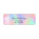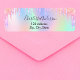 En trendig holografisk bakgrund med enhörningsfärger och regnbågsfärger i rosa, lila, mintgrön. Dekorerad med droppar i rosa och lila. Anpassa och lägg till ditt namn och adress. Perfekt för bröllopsfest, baby shower eller födelsedagsfirande inbjudningar, märkning av dina skolprylar.