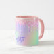 Holografisk rosa lila glitter droppar namn mugg