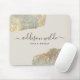 Holografisk signaturskript Modern Glam Glitter Musmattor. Denna design har en klassisk signaturskriptstil teckensnitt mot en vacker modern iriserande glans bakgrund. Perfekt för en skönhetssalong, frisör, sminkartist eller kosmetolog.