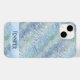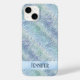 Ett telefonfodral med en faux holografisk pastellblå mönster.