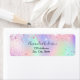 En trendig holografisk bakgrund med enhörningsfärger och regnbågsfärger i rosa, lila, mintgrön. Dekorerad med gnistor i rosa och lila. Personifiera och lägg till ditt namn och adress. Perfekt för bröllopsfest, baby shower eller födelsedagsfirande inbjudningar.