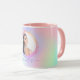 En holografisk bakgrund, rosa, lila, mynta bakgrund, dekorerad med flerfärgade gnistor runt fotot. Anpassa och lägg till bild och ett namn. Namn är skrivet med ett handskript i stil med dekorationer. Om du bara vill behålla utslagen tar du bort exemplet namn lämnar du blankstegen eller symbolerna framför och efter namn.