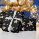 Välj den här vackra pappra inslagningen för alla firande. Faux holografiska regnbågsstjärnor hamnar mot den svarta bakgrunden. Finns i flera sparka färg. Använda för födelsedagar över backe, bröllop eller något annat firande.