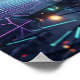 En majestätisk varg står i en surrealistisk futuristisk ödemark, formad av holografiskt ljus, genomskinlig geometri och subtila glitcheffekter. RGB-flimmer, scanline-strukturer och lysande kanter ger vargen en förfinad digital närvaro medan bruten terräng och skymningsdis skapar filmisk djup. Denna design känns mystisk, intelligent och kraftfullt modern. Perfekt för speluppställningar, kontor, sovrum eller någon som älskar vargar, sci-fi-teman och snygga högteknologiska bilder.