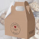 En klassisk brun presentlåda för att få in bakade bror med ingredienser och anpassade namn och namn. Denna pappra färgad för brunkol med rött hjärta följer med vilken presentförpackning eller märkre som helst och kommer att ge ge mottagaren den information de behöver om ingredienserna i fodral av livsmedelsallergier eller allergier. Anpassa för dina recept och ha dem till hands för att sätta på förpackningen när du ge någon paket av bakade varor. Använda verktyg i redigeraren för att lägga till produkten namn och ingredienser, eller ta bort texten i redigeraren och skriva informationen för hand senare. Lägg till din egen logotyp i ställe i hjärtat om du vill!
